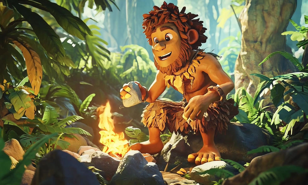 This artwork symbolizes humanity's evolving relationship with labor, aligning with the AI New Frontier theme. The journey begins with a Stone Man happily mastering fire, representing the origins of meaningful work. As technology advances, he becomes an overwhelmed businessman, eventually transforming into an emotionless robot. The shift from a natural forest to a futuristic cyberpunk city underscores how AI and automation can both enhance productivity and strip away human fulfillment. The piece questions the future of work as AI takes over, urging reflection on how we balance innovation with maintaining the human spirit in labor.